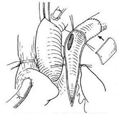 补片加宽左肺动脉起始部示意